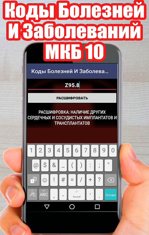 Приложение содержит все коды МКБ (Около 25000). Международная классификация болезней. Все бесплатно, просто вводи и получай расшифровку. Нет ничего проще! Онлайн и оффлайн. Справочник врача кодов поможет тебе установить заболевание, а потом подобрать лечение по совету врача. Помощник для врача и пациента. Болезни и их лечение всегда актуальны. Правильно подобрать лекарство по симптомам это самое важное. Некоторые ищут аналоги и цены лекарств, выбирая дешевое. Кто-то использует лекарственные травы. Но лучше обратитесь к врачу! Как видите, заболеваний очень много. Важно учитывать тонкости. Особенно когда касается детей. Исцеление не заставит ждать долго. Попробуй!