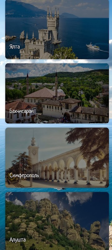 Dalam permohonan itu, anda boleh membuat kenalan awal dengan bandar-bandar Crimea, memilih tempat untuk melancong, menonton pemandangan dan ulasan video. Aplikasi itu juga mengandungi maklumat mengenai agensi pelancongan dan hotel yang menawarkan perkhidmatan mereka di bandar terpilih.