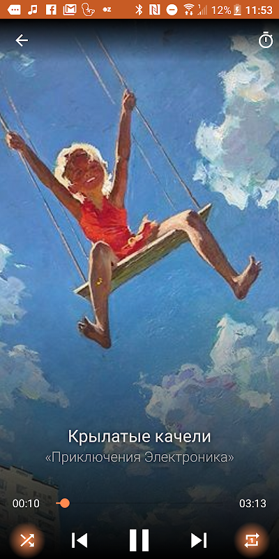 В приложении есть таймер, возможность проигрывать песни в случайном порядке или играть одну и ту же песню несколько раз подряд.