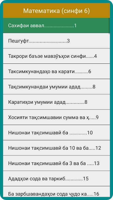 мундариҷаи китоби “Математика-6” бо суроғаи ш. Душанбе,