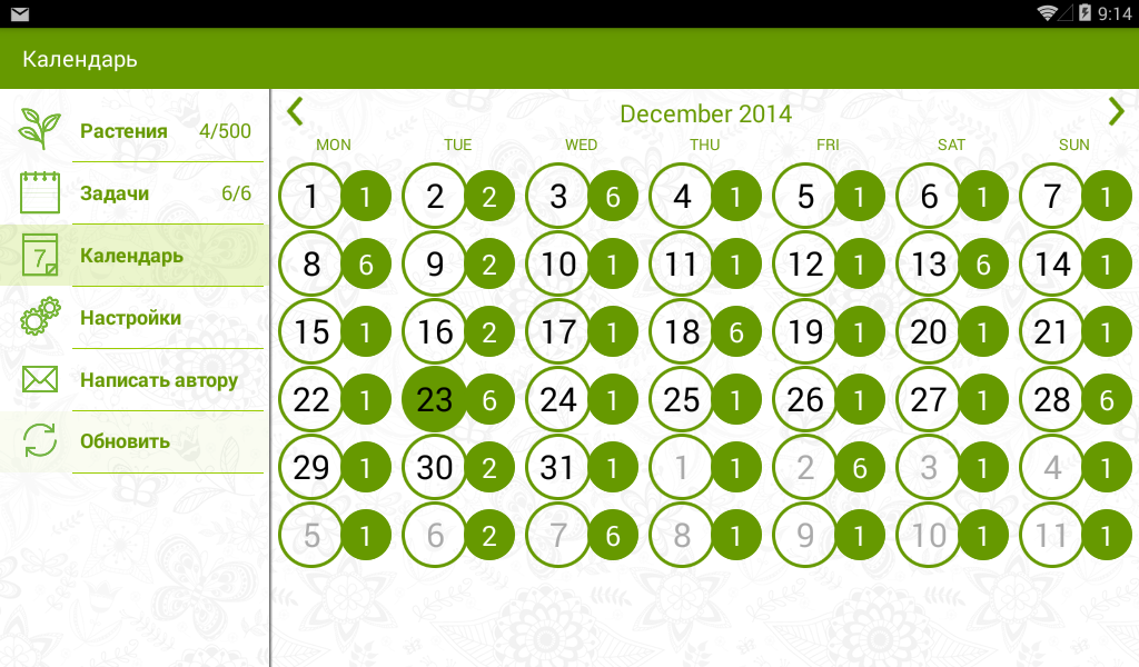 Pengurus tanaman dalaman akan membantu anda mengatur penjagaan tanaman (penyiraman, penyemburan, pembajaan, pemangkasan, pemindahan, merawat penyakit) dan akan mengingatkan anda pada waktu tertentu. Terdapat penerangan terperinci mengenai perawatan dan rawatan. Pada masa ini, aplikasi ini mengandungi 501 tanaman.