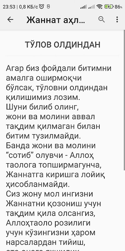 Жаннат аҳли ва жаннат амаллари 1.0