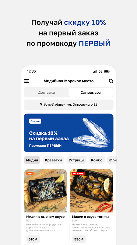 “Midiynaya • Sea Place” ialah aplikasi untuk penghantaran makanan di Ust-Labinsk!