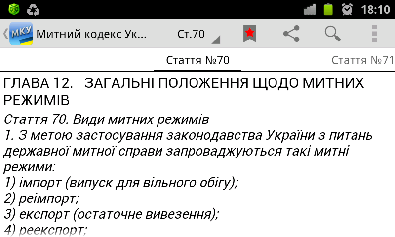 Програма Митний кодекс України містить повну версію Митного кодексу України зі всіма змінами та доповненнями.