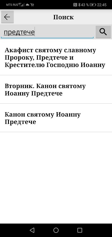 Aplikasi ini juga mengandungi banyak akathist dan kanon.