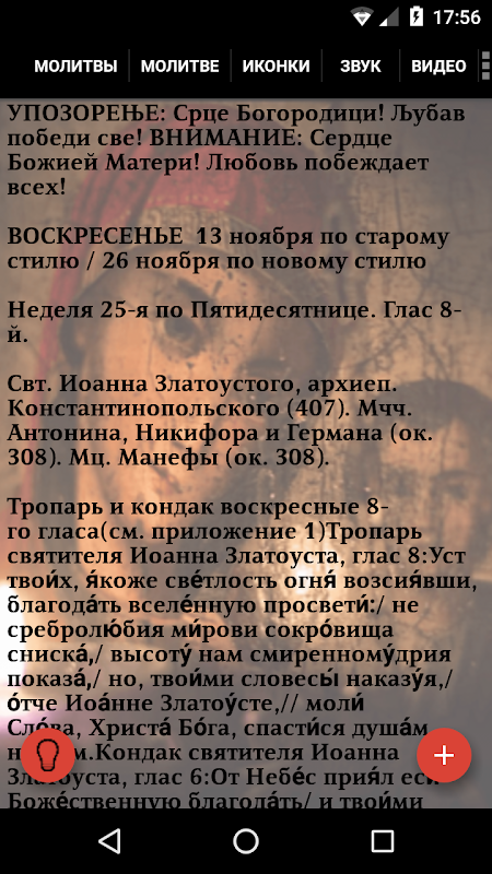 Апликација је направљена у Славу и Част Пресвете Богородице, за добро Српског, Руског и свог Прасвославног народа. Направљена је из љубави и захвалности према Православљу и Пресветој Богородици. Апликација је бесплатна и садржи православне молитве на руском и на српском језику које су преузете са српских и руских интернет сајтова. Апликација одражава ауторов поглед на Православље.