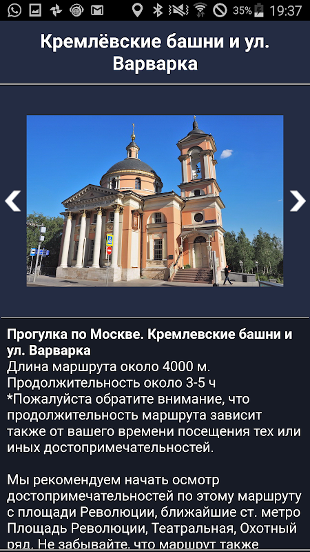 ● PENERANGAN dan CERITA untuk setiap tempat menarik disediakan secara profesional dalam bahasa Rusia dan termasuk maklumat latar belakang, termasuk. bagaimana menuju ke sana, waktu buka, dll.