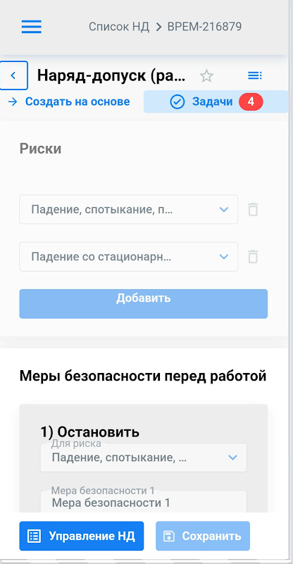 Semasa membangunkan END, kami mengambil kira kewujudan hak yang berbeza untuk mengisi permit kerja untuk pengguna yang berbeza. Aplikasi ini mengautomasikan pergerakan pesanan kerja di sepanjang rantaian orang yang bertanggungjawab.
