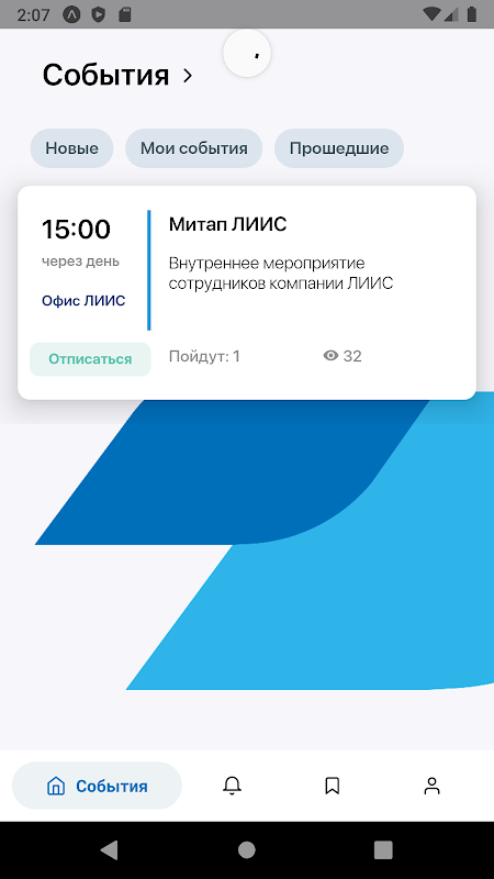 Приложение для мониторинга событий и участия в событиях заказчика. Голосования, уведомления о событиях, материалы событий.