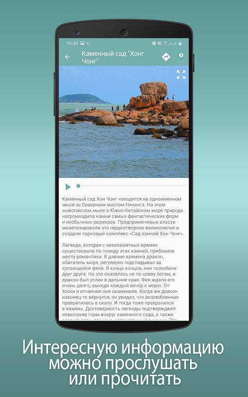 Muat turun peta terlebih dahulu untuk menggunakan aplikasi luar talian, atau pilih salah satu laluan yang dicadangkan dan pergi untuk meneroka bandar. Main balik rakaman akan bermula sebaik sahaja anda mendapat dekat dengan titik minat. Hentikan rakaman pada bila-bila masa atau dengar lagi. Jalan anda akan bermaklumat dan menarik! Kini bandar Nha Trang akan membuka rahsia untuk anda.