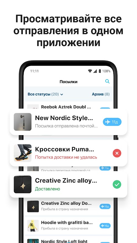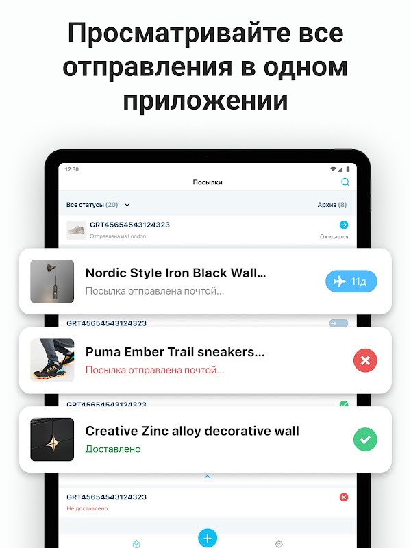 Satu-satunya perkara yang anda perlukan untuk menjejak kargo dengan cepat dan tepat dalam mel antarabangsa ialah nombor bungkusan. Selepas penjual menghantar kod trek kepada anda, anda perlu memasukkannya dalam medan carian aplikasi. Semua maklumat baharu mengenai penghantaran ekspres kargo anda akan dihantar ke telefon pintar anda. Anda akan mengetahui setiap langkah kargo anda sehingga ia sampai kepada anda.