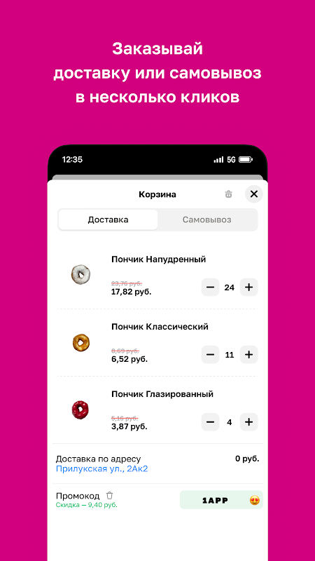Aplikasi mudah alih Donut Planet ialah pembantu anda yang boleh dipercayai dalam dunia masakan lazat dan aromatik! Dengan aplikasi ini, anda boleh melihat menu dengan cepat dan mudah, memilih hidangan mengikut citarasa anda dan memesan penghantaran terus dari telefon pintar anda.