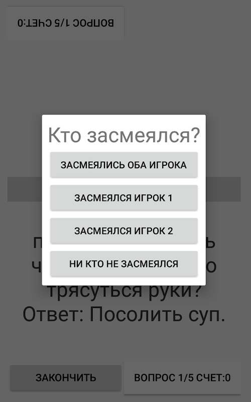 Permainan ini direka untuk dua orang. Matlamat permainan, jenaka supaya lawan anda ketawa, maka anda mendapat 1 mata. Jika kedua-dua pemain ketawa, kemudian salah satu mendapat 1 mata. Menang pemain yang menjaringkan mata yang paling. Jika anda mahu jenaka anda telah ditambah kepada permainan, menulis dalam komen kepada permainan.