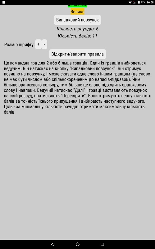 Selepas memulakan permainan, pilih hos dan berikan telefon kepadanya. Fasilitator mempelajari kedudukan peluncur yang perlu dia teka. Selepas dia menyebut perkataan itu, pemain lain berunding dan meneka kedudukan pada peluncur. Mereka akan mempunyai 2 pembayang - bahagian kiri dan kanan peluncur, seperti "Mudah" dan "Berat". Jika penyampai berkata "Bulu", dia bermaksud sesuatu yang ringan, dan ini adalah sejenis kedudukan kiri. Lebih tepat pemain meletakkan slider, lebih banyak mata yang mereka terima. Matlamatnya adalah untuk mendapatkan mata maksimum dalam pusingan minimum. Anda boleh membaca lebih banyak peraturan dalam projek.