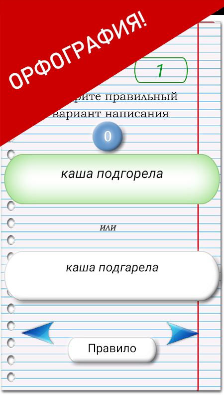 - содержит множество тестов по определенным грамматическим и орфографическим темам с объяснением правил написания слов;