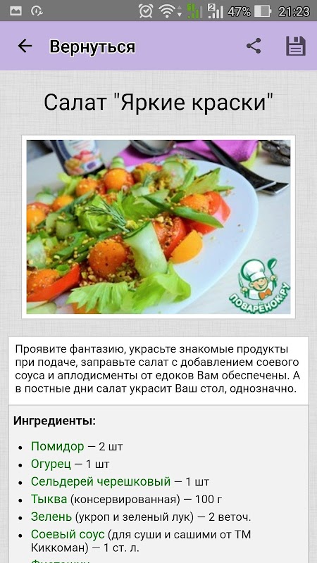 Walaupun tukang masak orang baru akan dapat dengan mudah menyediakan apa-apa hidangan sayur-sayuran - ini menyumbang kepada penerangan terperinci setiap langkah proses memasak, dilengkapi dengan gambar-gambar yang berwarna-warni. pengguna juga berpengalaman akan sentiasa membantu nasihat berharga!
