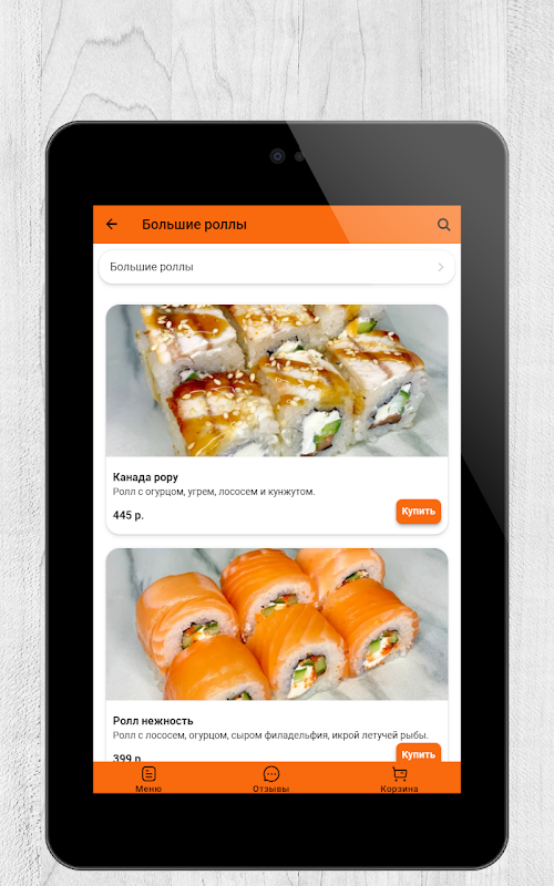 Penghantaran roti gulung, pizza dan sushi yang lazat di Vladimir