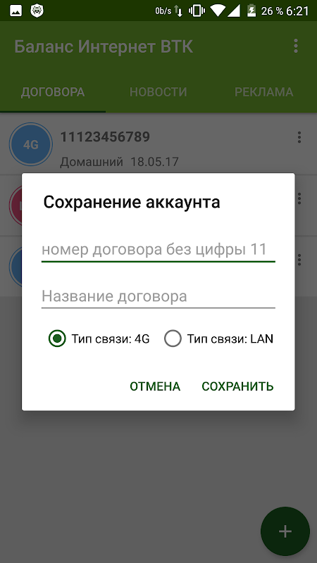 Программа позволяет проверят баланс счета у Интернет провайдера "Вайнах телеком"