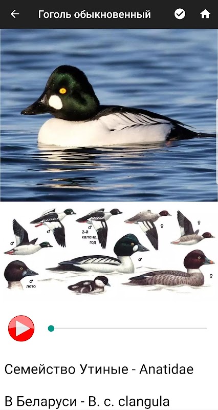 Permohonan luar talian. Foto, suara dan penerangan mengenai semua jenis burung Belarus.