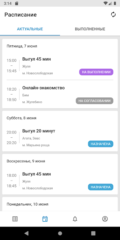Aplikasi ini mempunyai keupayaan untuk memilih pesanan yang sesuai, lihat jadual anda dan memulakan dan menamatkan perkhidmatan.