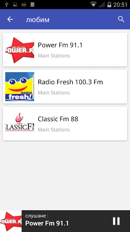 Назоваваме различните станции, които можете да слушате: