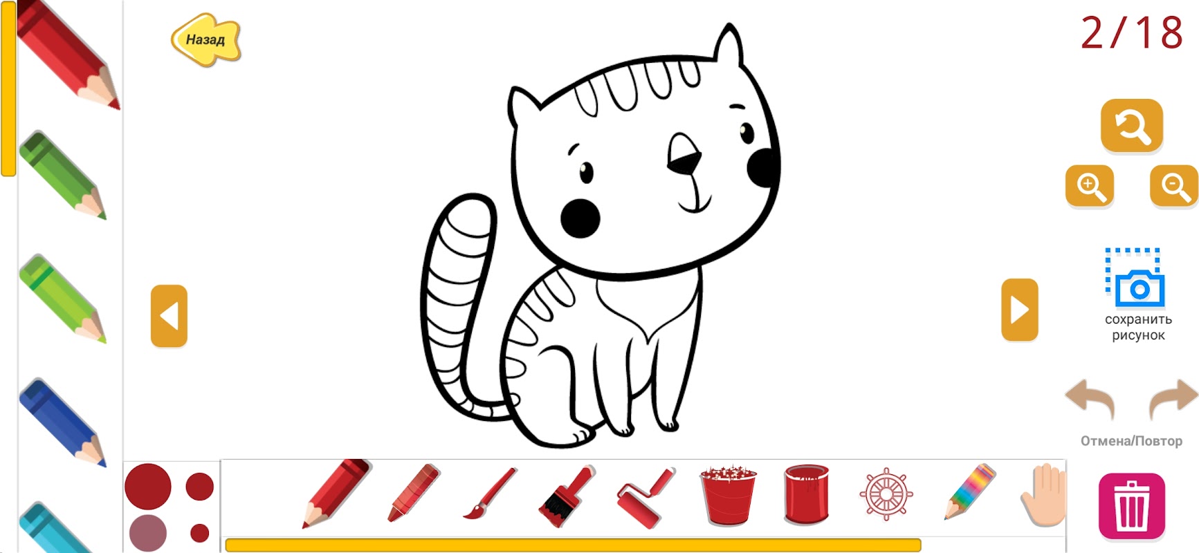 Satu program untuk melukis dan mewarna lukisan kontur, mewarna gambar dengan keupayaan untuk menyimpan hasilnya ke galeri foto anda dan kemudian menghantarnya kepada rakan.