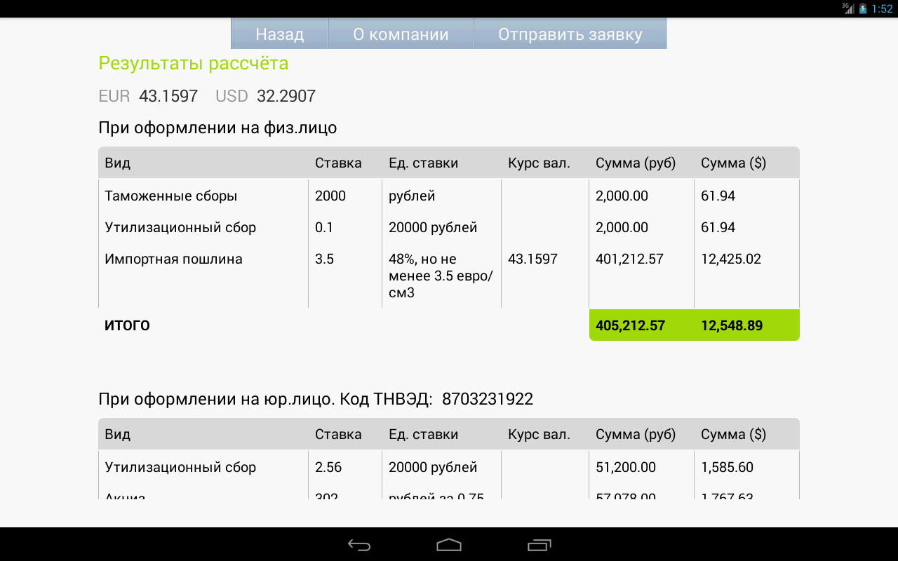 Таможенный автокалькулятор «РастаможCar» поможет Вам быстро рассчитать сумму платежей как при оформлении на физическое, так и при оформлении на юридическое лицо. Результаты расчета будут содержать стоимость процедуры (пошлина, акциз, НДС) и величину утилизационного сбора.