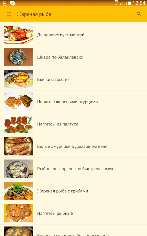 В мобильном сборнике «Рецепты рыбаков» публикуются не только классические рецепты рыбных блюд, здесь вы найдете множество полезной информации о солении, копчении и запекании рыбы, советы по чистке, потрошению и хранению рыбы.