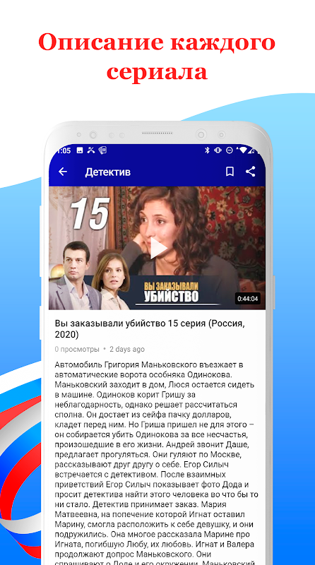 Setiap siri dan filem TV Rusia yang anda lihat dalam katalog diperoleh menggunakan API Youtube rasmi, yang akan menjamin sambungan yang stabil dan kualiti tinggi dari semua filem dan siri. Kami sentiasa terbuka untuk kritikan dan cadangan, jadi hanya yang terbaik untuk anda!
