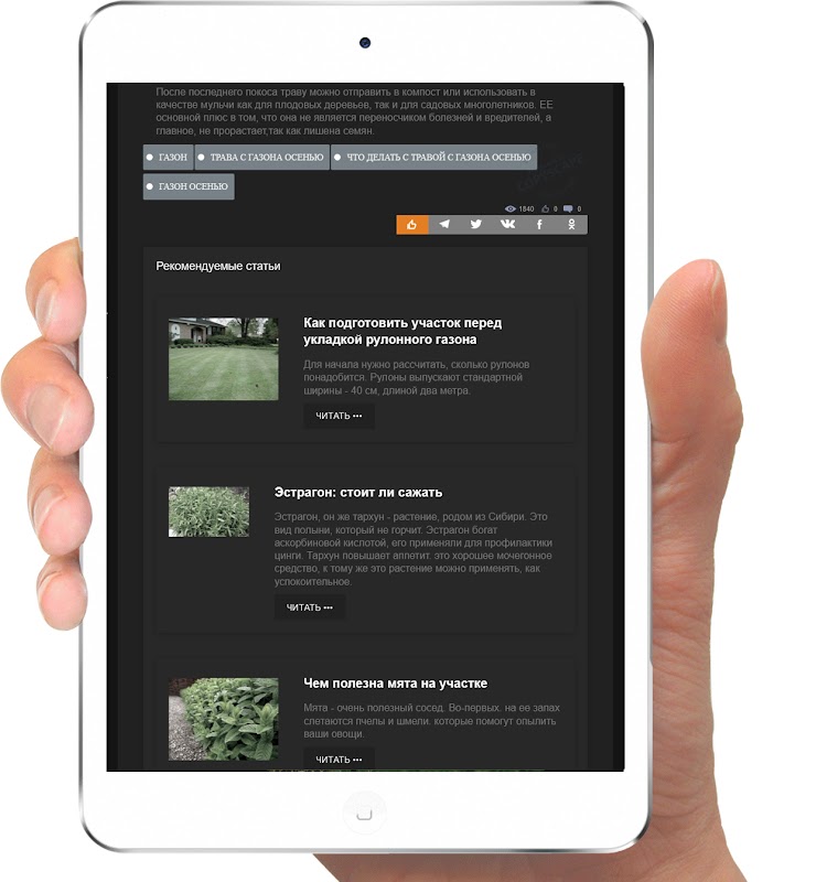 Aplikasi ini melaksanakan carian kata kunci. sebagai contoh, anda memutuskan untuk menanam currant dan tidak tahu bagaimana, di mana dan apa yang perlu dilakukan seterusnya dengannya untuk mencapai hasil yang sangat baik. Anda memasukkan pertanyaan "currant" - dan dapatkan bahan untuk penanaman, pemangkasan, pembalut atas, dsb. Kami memutuskan untuk membina rumah - tiada masalah. Pertanyaan "asas" - 50 artikel daripada "asas mana yang hendak dipilih" kepada "saliran dan pengukuhan asas."