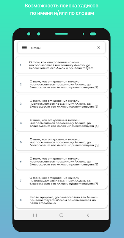 Возможность поиска хадисов по имени и/или по словам.