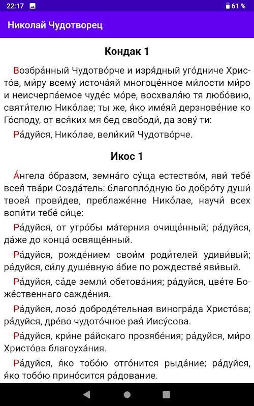 Aplikasi itu mengandungi akathist kepada Nicholas the Wonderworker, kehidupan dan keajaibannya. Anda juga boleh mengetahui di mana peninggalan St. Nicholas berehat dan percutian Nicholas the Wonderworker.