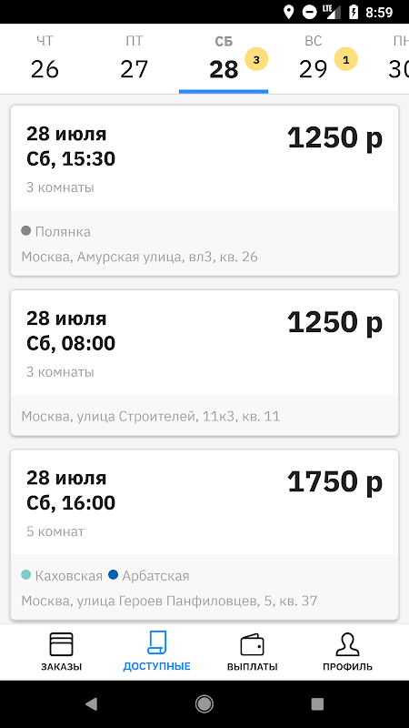 Search for orders for cleaning apartments