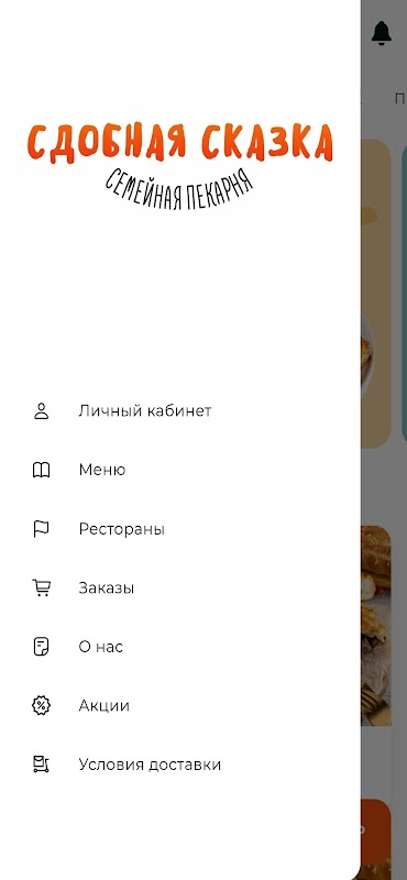Aplikasi kedai roti yang mudah Sdobnaya Skazka! Pai yang lazat untuk dipesan dengan penghantaran atau pengambilan, piza dengan doh yang gebu, kek untuk majlis khas.
