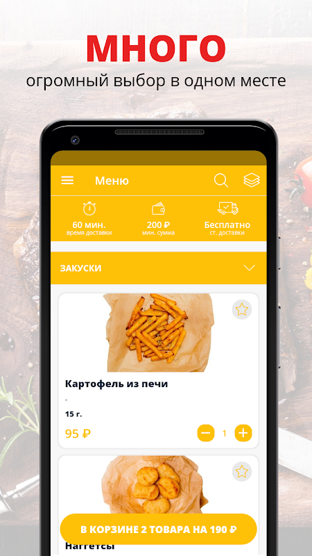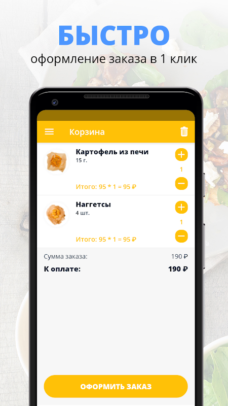 Заказывайте Ваши любимые блюда у нас, и Вы останетесь довольны качеством сервиса. У нас работают лучшие повара, а курьеры приятно порадуют вежливостью и быстрой доставкой.