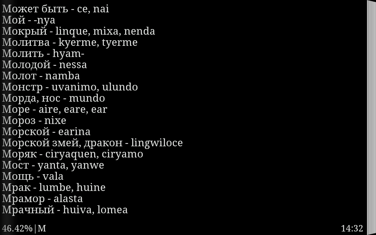 Словарь очень удобен в использовании; для того, чтобы найти русский перевод квенийского слова, воспользуйтесь функцией поиска.