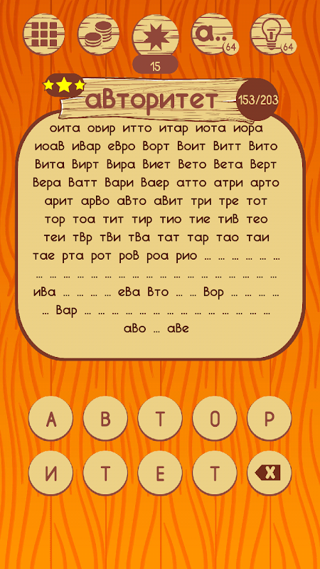 Слова из слов, это одна из самых популярных словесных игр. Для прохождения вам доступны 2000 уровней. Если вам нравиться Ребусы, Балда, Виселица, Угадай слово, Собери слова, Составь слова, викторины и головоломки, то эта игра именно для вас.
