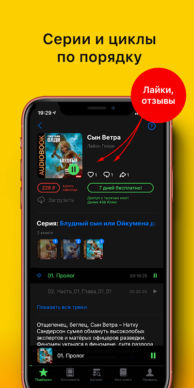 · Buku dikumpulkan dalam Siri. Sekiranya audiobook mempunyai sekuel, anda akan segera melihatnya dalam blok "Siri"