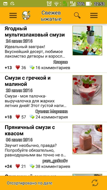 portal masakan Popular Povarёnok.ru bersedia untuk berkongsi dengan anda koleksi yang kaya dengan smoothie dan jus segar resipi.