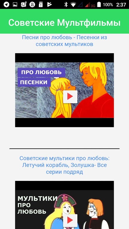 Приложение Советские Мультфильмы - это наши советские мультфильмы на вашем телефоне. Скачать советские мультфильмы вполне возможно, но не имеет смысла с приложением Советские Мультфильмы: ведь любимые мультфильмы теперь можно смотреть и без скачивания. Теперь вам доступны русские мультфильмы такие как: мультфильмы карусель, мультфильмы про новый год, Ну погоди, Простоквашино, Бременские Музыканты, 38 попугаев, и другие. Наши советские мультфильмы - это в первую очередь любимые мультфильмы советского детства - русские мультфильмы снятые во времена СССР. Советские мультфильмы скачать достаточно сложно, к тому же скачав мультфильмы вы займете место на телефоне, и возможность смотреть мультфильмы офлайн может быть омрачена нехваткой места для фото и замедленной работой вашего телефона. Мы рекомендуем смотреть мультфильмы на русском без необходимости скачать советские мультфильмы, ведь наличие интернет-соединения позволяет комфортно смотреть любые мультфильмы на русском, будь то мультфильмы карусель либо мультфильмы про новый год. Лишь в одном случае вам может понадобиться советские мультфильмы скачать - при необходимости смотреть мультфильмы офлайн