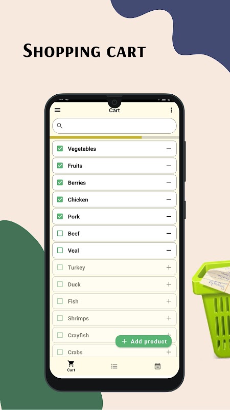 - Senarai beli-belah disimpan pada peranti anda dan tersedia pada bila-bila masa tanpa akses internet. Anda boleh menambah foto atau lukisan pada senarai beli-belah anda untuk membezakannya secara visual. Terima kasih kepada carian, anda boleh mencari senarai beli-belah atau produk yang diingini dengan cepat di dalam senarai.