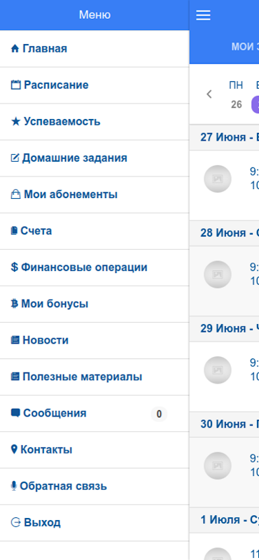 Aplikasi ini membolehkan anda melihat jadual penuh di Studio, atau hanya pelajaran anda. Anda boleh menyemak baki kelas dalam langganan aktif, transaksi pembayaran untuk kelas, kerja rumah, keputusan kelas, lihat tanda kehadiran dan penyiapan kerja rumah. Terdapat juga maklumat tentang baki semasa, berita, kenalan, bahan pendidikan yang berguna dan banyak lagi.
