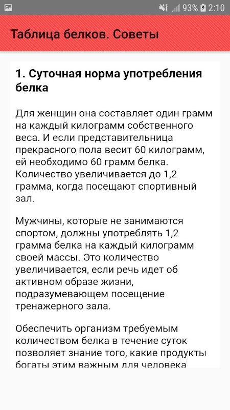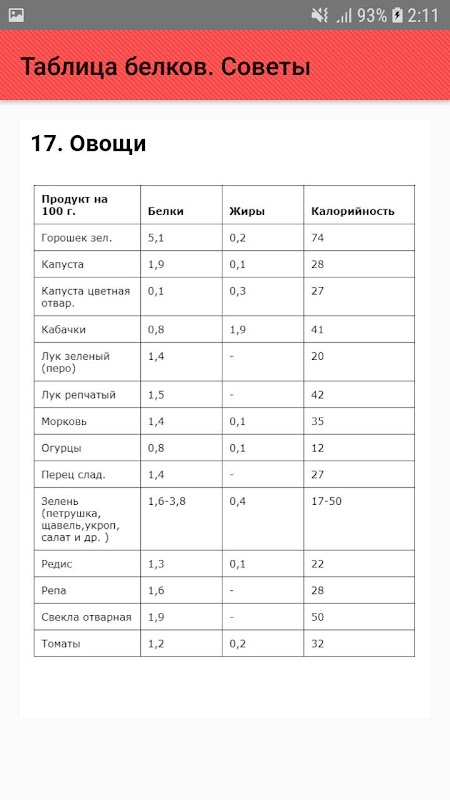 Maklumat APK Таблица белков. Советы