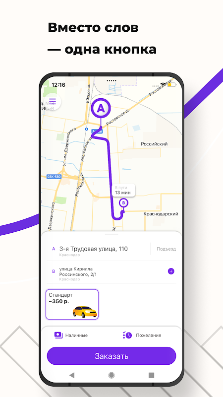 Alamat penghantaran akan ditentukan secara automatik. Apa yang anda perlu lakukan ialah menunjukkan ke mana anda akan pergi. Gunakan templat dengan alamat dan tetapan yang paling kerap anda gunakan untuk memesan teksi dalam beberapa klik.