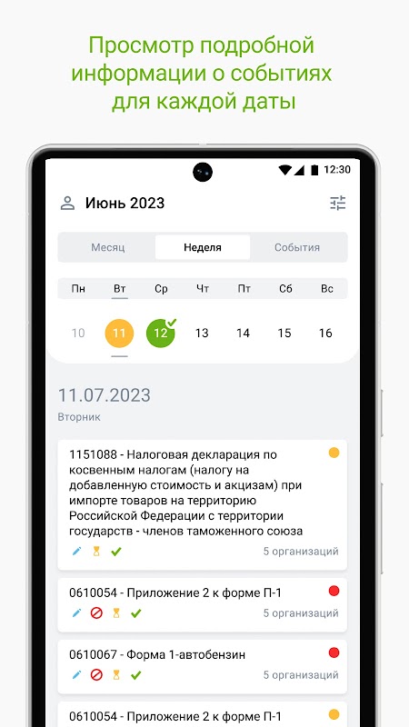 Aplikasi ini menandakan semua tarikh pelaporan penting dan memberitahu anda tentang tarikh akhir yang menghampiri.