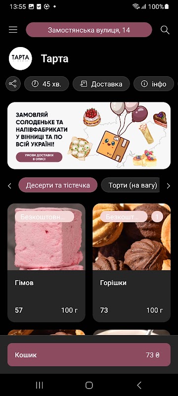 Tarta di Vinnytsia ialah tempat di mana gula-gula lazat dan semula jadi dicipta untuk semua orang. Menu kami termasuk kek, pastri, pencuci mulut, biskut, pai dan produk separuh siap yang akan membantu anda menyediakan hidangan kegemaran anda di rumah dengan cepat. Kami hanya menggunakan bahan berkualiti tinggi tanpa bahan tambahan tiruan untuk memastikan rasa dan keseronokan sebenar dari setiap gigitan. Tarta menawarkan produk untuk sebarang acara: daripada kek perayaan hingga juadah harian, serta pelbagai pilihan ladu, ladu, penkek dan produk separuh siap lain yang mudah disediakan di rumah. Pasukan kami sentiasa bersedia untuk menggembirakan anda dengan resipi baharu dan tawaran yang menguntungkan. Lawati Tarta di Vinnytsia dan lihat sendiri kualiti produk kami!