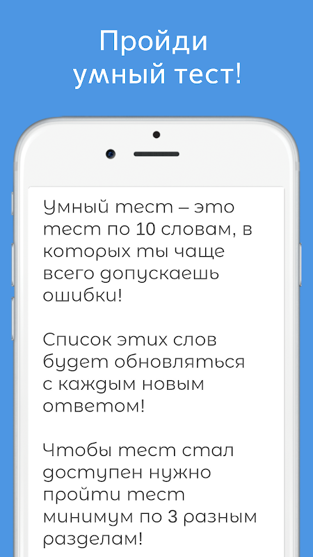 Kami juga mempunyai ciri unik - "Ujian Pintar", - ini adalah ujian 10 perkataan di mana anda paling kerap melakukan kesilapan! Senarai ini akan dikemas kini apabila maklum balas diterima.