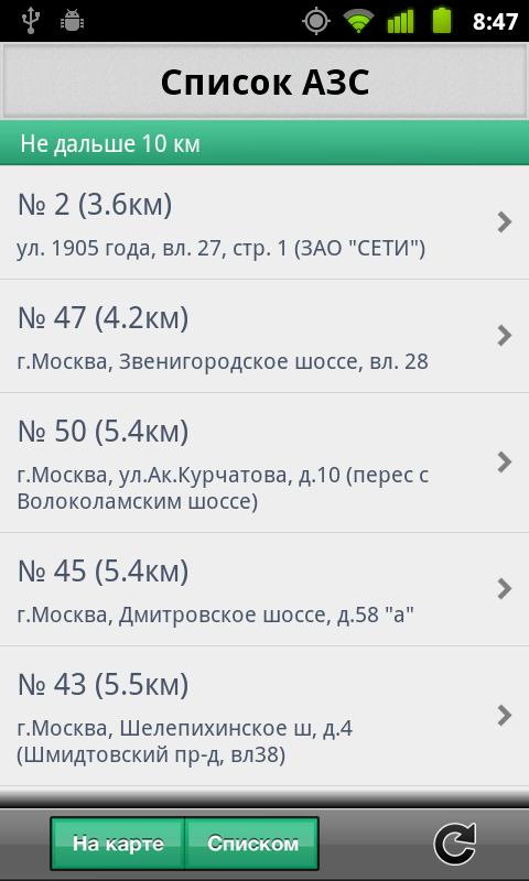 - искать АЗС по адресу
