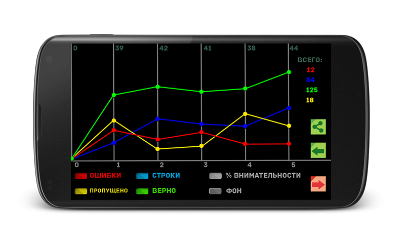 Знаменитый тест Бурдона из разряда " Психологические тесты " позволяющий оценить внимательность, объем, концентрацию и устойчивость внимания. Продолжительность теста на устройстве занимает 5 или 10 минут. Программа записывает ваши результаты в память каждую минуту и в конце строит график по которому можно определить пик устойчивости, концентрации и объема внимания, а так же их спада на протяжении теста. Все результаты записываются и доступны для анализа в любое время, что дает возможность не только протестировать себя но и развивать концентрацию внимания.