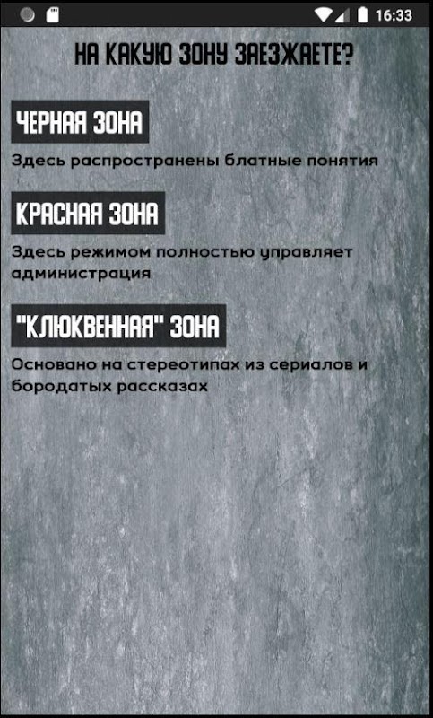 Ujian mengenai topik popular berdasarkan video YouTube mengenai topik yang berkaitan dengan penjara. Ia dibentangkan dengan izin mereka. Dibuat dalam gaya pengembaraan teks, dengan kemampuan untuk memilih zon dan ratusan cabang dialog. Permainan ini memberi peluang, seperti pengembaraan yang lebih serius, dan pengembaraan yang stereotaip lucu dengan semua teka-teki kegemaran anda. Oleh kerana terdapat banyak dialog, dan saya merancang untuk mengembangkan permainan dengan cabang pencarian baru, bug atau gangguan dialog mungkin. Mengenai semua kekurangan yang dijumpai, baik dalam komponen teknikal dan semantik, menuliskan surat ke studio. Salam!